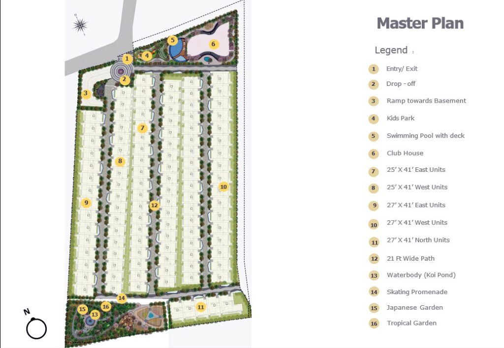 • Smart and Sustainable Living: The villas are equipped with smart home automation systems for managing lighting, security, and climate. The project also incorporates sustainable features like solar water heaters, rainwater harvesting, and a sewage treatment plant to promote eco-conscious living.