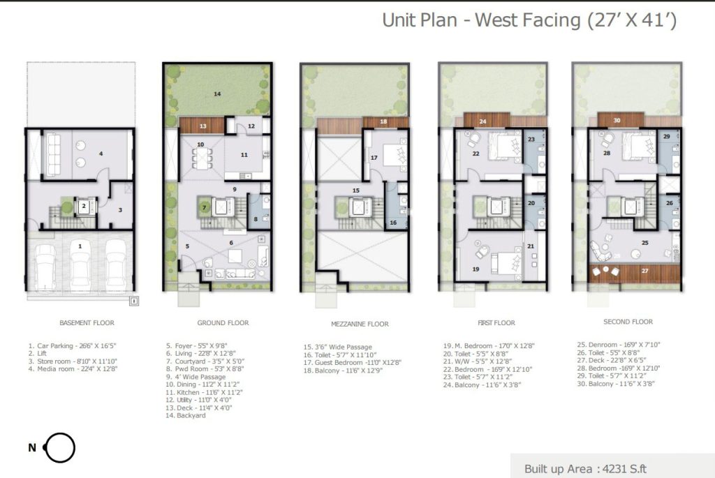 • Luxurious 4 BHK Villas: The project offers exclusive 4 BHK villas with spacious layouts. These triplex villas have super built-up areas ranging from 4,000 to 4,800 sq. ft., providing ample space for modern families.