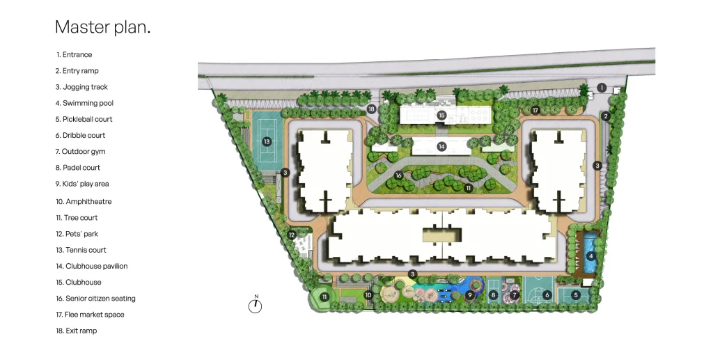 The community is enriched with over 30 world-class amenities, including paddle tennis and pickleball courts, a fully equipped gym, yoga pavilion, swimming pools, and dedicated play areas. From wellness to recreation, every detail is designed to elevate your daily living.